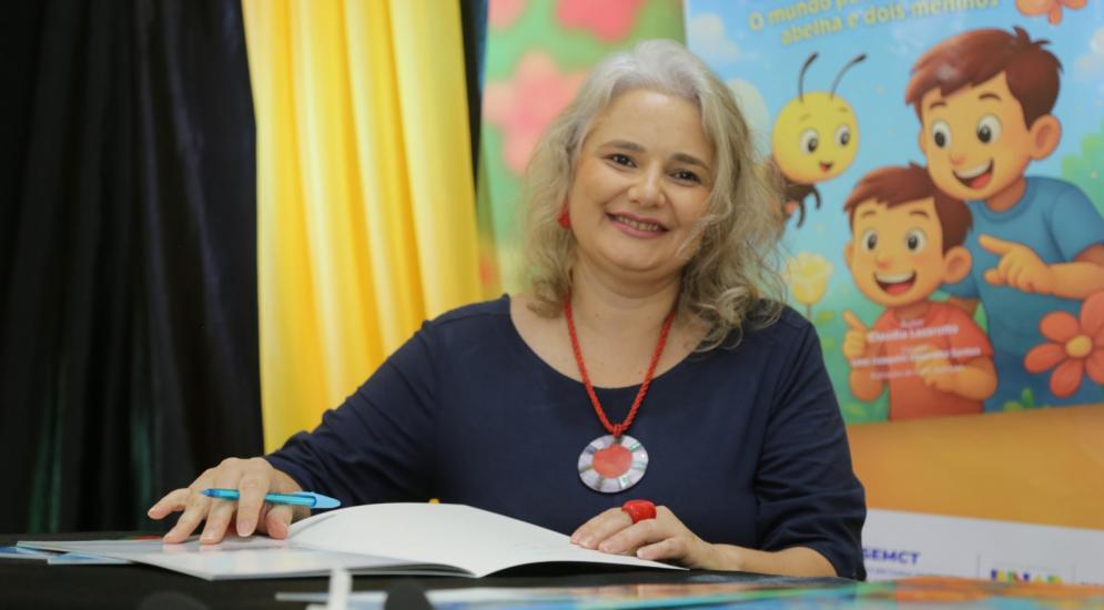 Durante o bate-papo, Claudia contou que o livro surgiu dos momentos de contação de histórias entre mãe e filhos, transformando a imaginação cotidiana em literatura. “O mundo retratado em As Aventuras de Abelita é o mundo pelos olhos de uma abelha e dois meninos”, destacou a autora, reforçando o olhar sensível e curioso que permeia a obra.