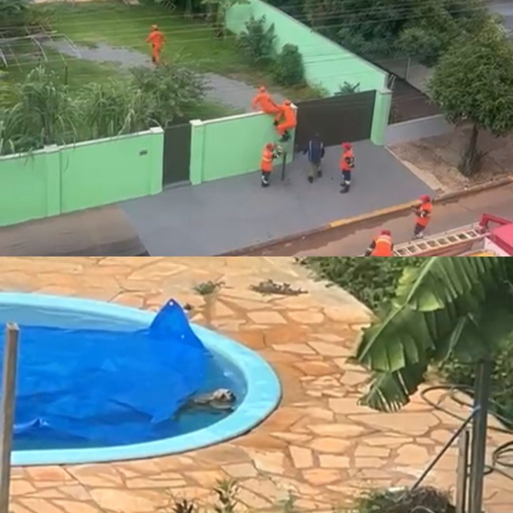 Vizinhos de um prédio ao lado do imóvel perceberam que o animal tentava, sem sucesso, sair da água há mais de 15 minutos. Diante da situação, o Corpo de Bombeiros foi acionado e chegou rapidamente ao local. Como não houve contato com os proprietários da residência, a equipe precisou pular o muro para realizar o resgate.