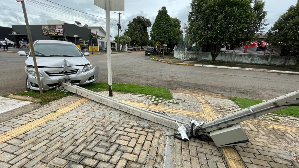 Com o forte impacto, o veículo branco foi parou em cima de uma calçada, enquanto o carro cinza colidiu frontalmente em um poste, danificando completamente a estrutura.