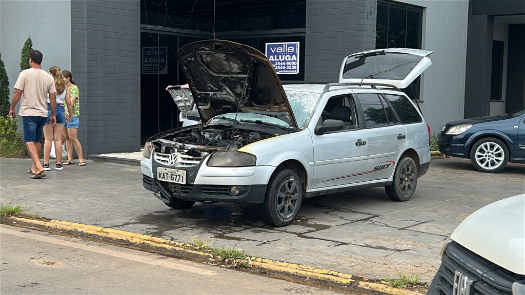 Na manhã de sábado, 24, um incêndio surpreendeu os ocupantes de uma Parati no entroncamento da Avenida Tancredo Neves com a BR-163, em Sorriso. O veículo, conduzido por um homem e com uma mulher e uma criança como passageiros, começou a pegar fogo de forma inesperada.