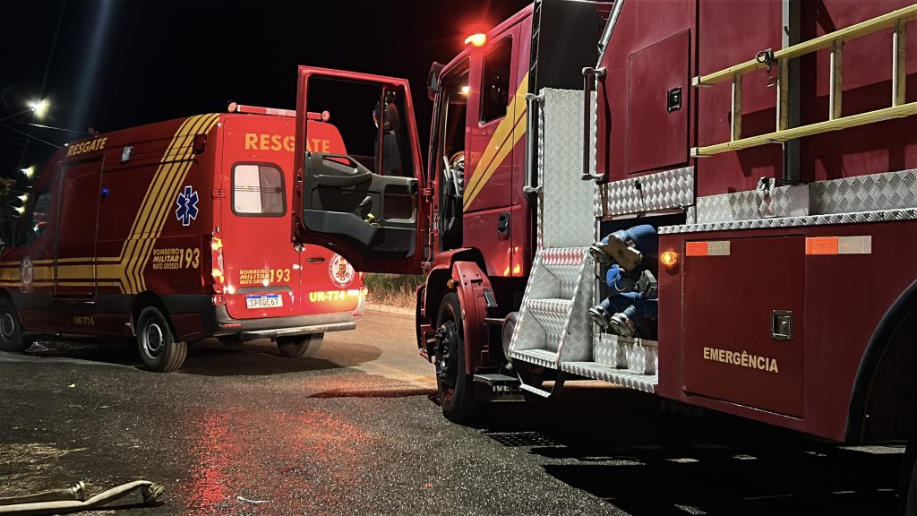 A Polícia Militar também foi acionada para ir até o endereço, pois os vizinhos relataram que o fogo iniciou após ouvirem duas pessoas invadindo uma das casas com disparo de arma de fogo contra porta de vidro. Os moradores informaram que sentiram cheiro de fumaça no local e logo as chamas se espalharam pelo forro e móveis.