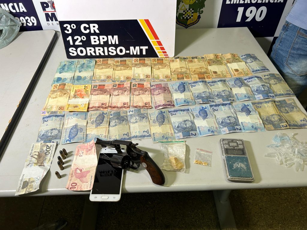 De acordo com informações, a equipe policial avistou a motocicleta informada, em seguida, o casal estaria saído da residência quando foram abordados. Em revista na casa, um revólver foi encontrado em baixo do colchão, a mulher disse que não seria dela, porém, o homem que estava lhe acompanhando não é morador de Sorriso.