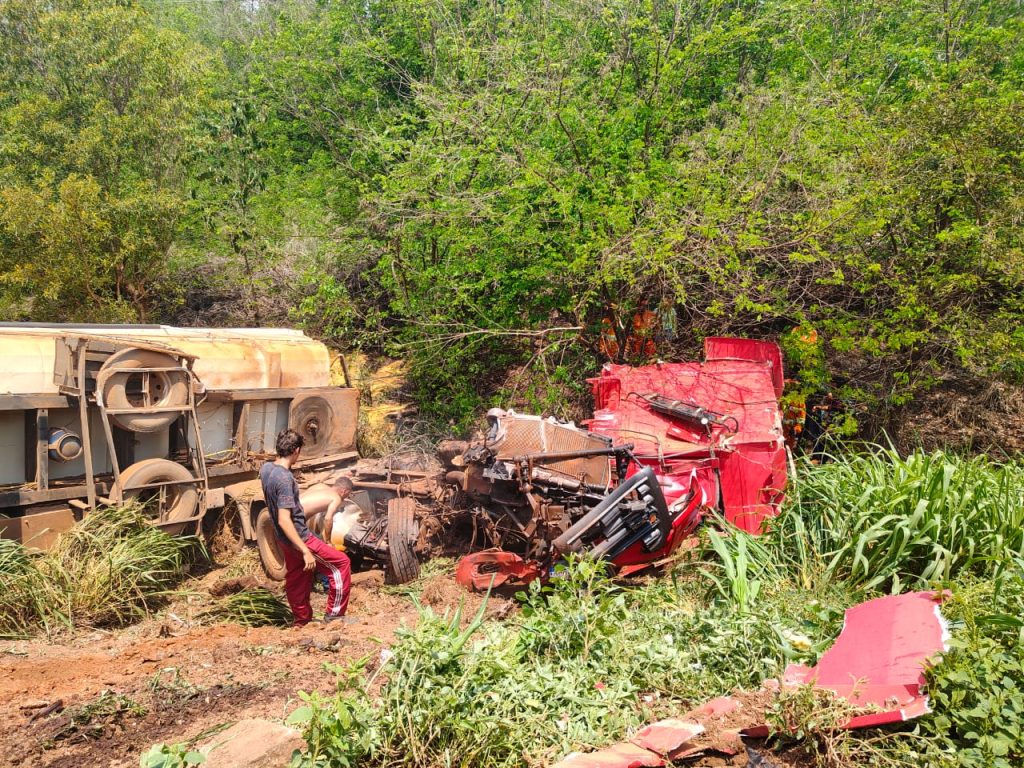 Segundo informações preliminares, a colisão foi do tipo traseira. Com o impacto, o cavalo mecânico e um dos vagões de uma das carretas tombaram às margens do rio — sem atingir o curso d’água —, resultando também no derramamento de milho transportado e vazamento de combustível.