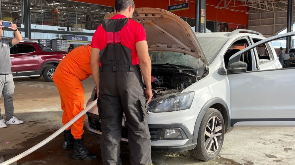 Na tarde de terça-feira (21), o Corpo de Bombeiros combateu um princípio de incêndio em um veículo que estava no estacionamento de supermercado. Conforme informado pelo Cabo Facundo, ao chegarem no endereço, as chamas iniciais foram contidas com pó químico.