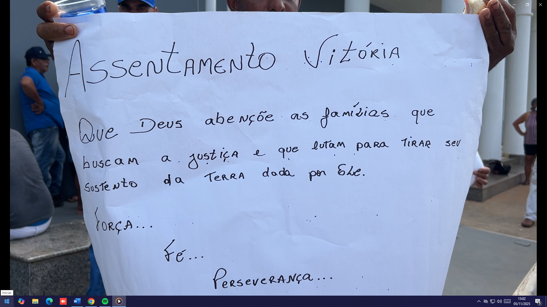 Moradores do Assentamento Vitória, na zona rural de Sorriso, estiveram na tarde desta quarta-feira (05) em frente ao Fórum da cidade, em manifestação pacífica contra o cumprimento de uma ordem de desocupação da área onde vivem há vários anos. As famílias afirmam que dependem exclusivamente da terra para subsistência e pedem que o despejo, já autorizado pela Justiça, seja suspenso ou ao menos adiado.