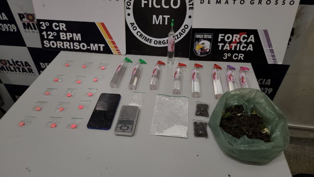 Nos vidros de lança perfume, os policiais informaram que havia também uma escrita, características de facções criminosas. O suspeito confirmou que adquiriu os ilícitos por meio de um grupo criminoso e que realiza o tráfico naquela região.