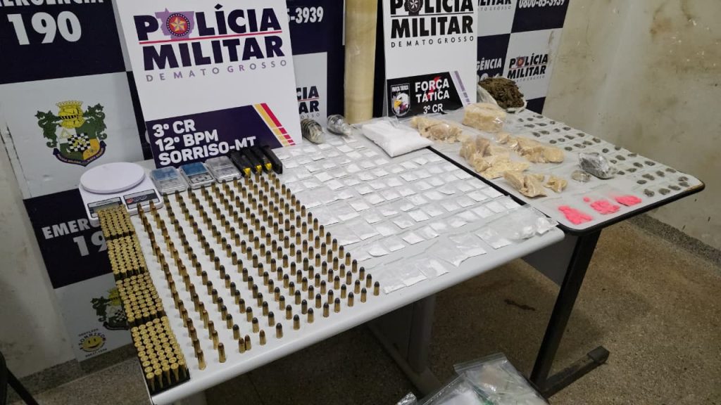 Após o serviço de monitoramento e levantamento de informações através do setor de inteligência da Força Tática de Sorriso, dois homens, 28 e 29 anos, foram presos na noite de ontem (29) na região leste da cidade, vasta quantidade de entorpecentes, munições e duas granadas foram localizadas.