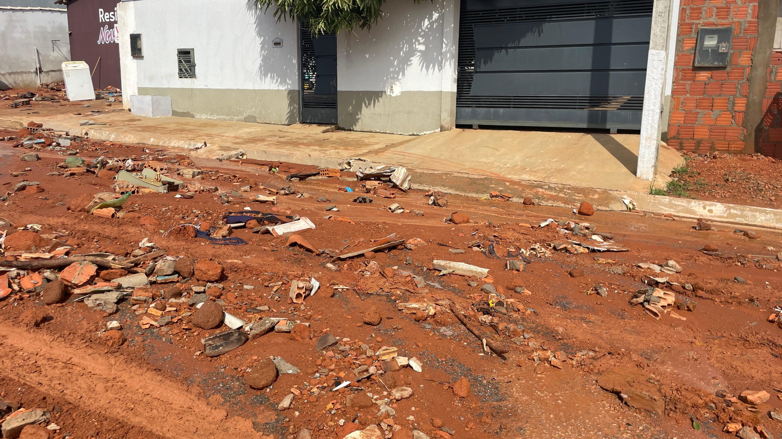 Forte chuva causa estragos em Sorriso; muro de residência caiu no bairro Novo Horizonte