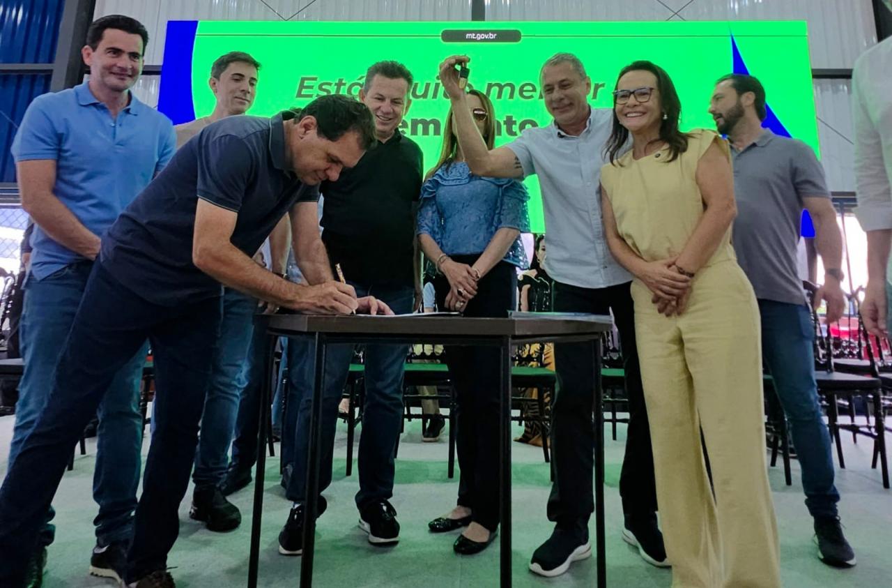 O governador de Mato Grosso, Mauro Mendes, esteve em Sorriso nesta sexta-feira (6), onde inaugurou obras e assinou autorizações de investimentos nas áreas de educação, infraestrutura, habitação e apoio à agricultura familiar. A agenda contou com a presença do prefeito Alei Fernandes, do vice-prefeito Acacio Ambrosini, dos secretários de Estado Fabio Garcia (Casa Civil), Alan Porto (Educação) e Cesar Roveri (Segurança Pública), além de autoridades estaduais, municipais e representantes de instituições locais.