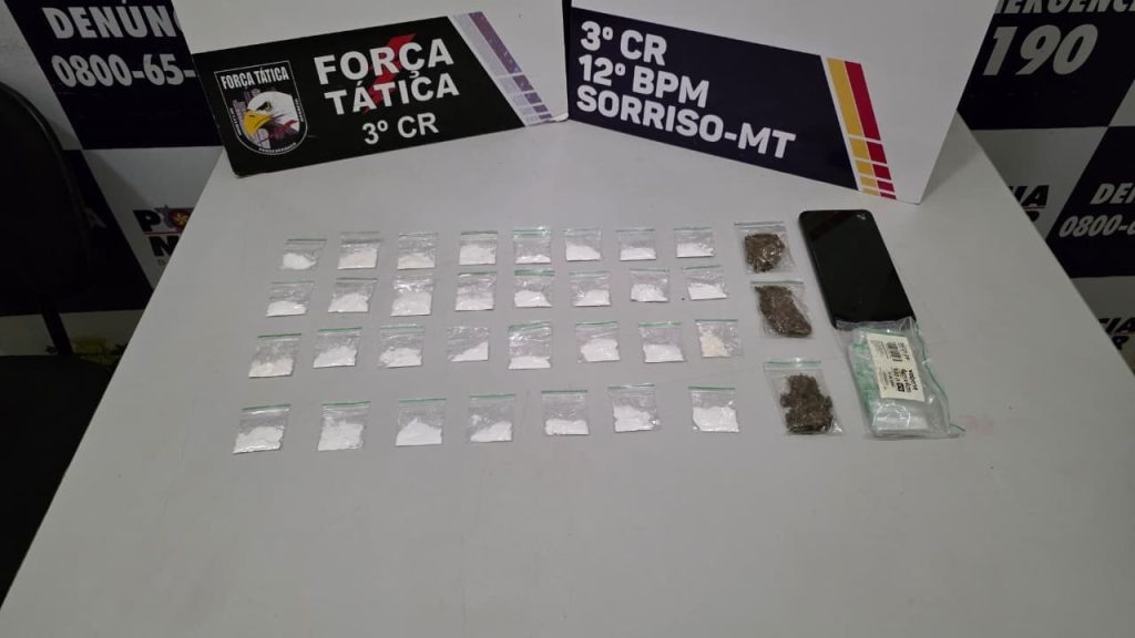 O setor de inteligência da Força Tática tem levantado várias informações sobre pessoas comercializando entorpecentes na cidade de Sorriso e, em um rápido trabalho, as guarnições na rua têm localizado e efetuado a detenção.
