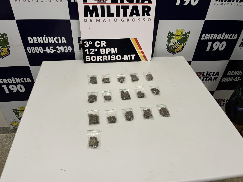 Um menor de idade foi apreendido pela equipe da Polícia Militar na noite de quinta-feira (13) em Sorriso. Com o jovem, várias porções de entorpecentes foram encontradas.