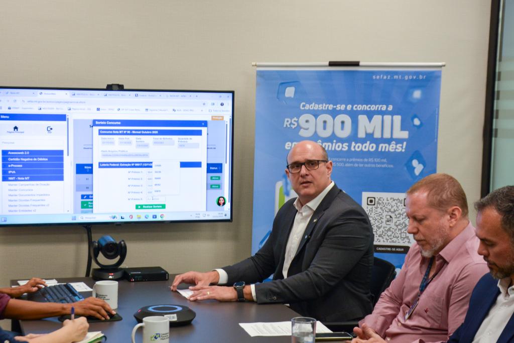O sorteio desta quinta-feira (13.11) foi a 90ª extração do Nota MT, desde a criação do programa em 2019. Ele foi conduzido pelo secretário adjunto de Projetos Estratégicos, Vinícius Simioni, pelo superintendente de Gerenciamento de Projetos, Gilson Pregely, além da equipe técnica do programa e do auditor da Controladoria Geral do Estado (CGE), Jonathas Fuji, garantindo transparência e lisura ao processo.