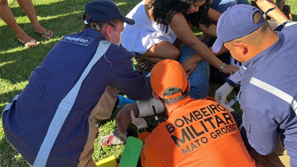A vítima foi socorrida por uma equipe do Corpo de Bombeiros. No local, o membro ferido foi imobilizado e, em seguida, o motociclista foi encaminhado ao Hospital Regional de Sorriso para atendimento médico.