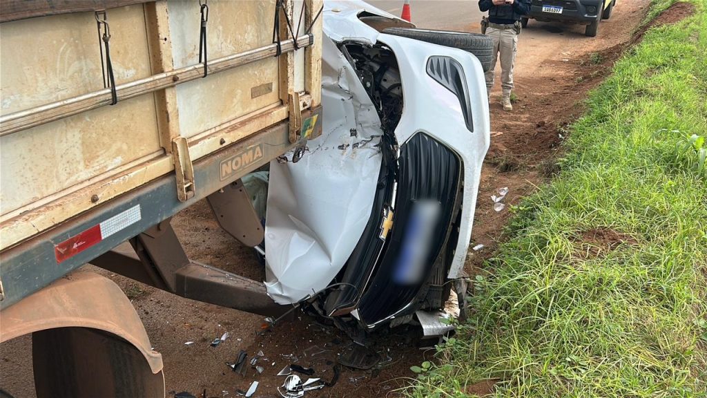 De acordo com as informações iniciais, um GM Onix seguia pela rodovia quando o motorista perdeu o controle da direção, saiu da pista, atravessou o canteiro lateral e acabou colidindo contra uma carreta Scania que estava estacionada na marginal da rodovia.