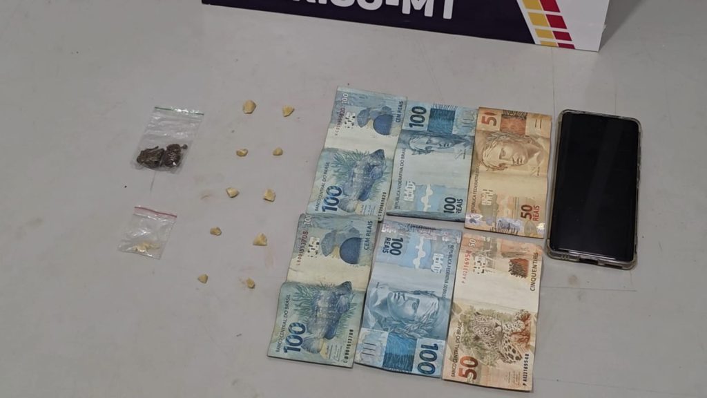 Além das drogas, quantidade em dinheiro foi encontrada, R$ 500 em espécie, ela confirmou que já estava vendendo e o valor era do tráfico de drogas. Questionada sobre a tornozeleira, a suspeita não deu informações.