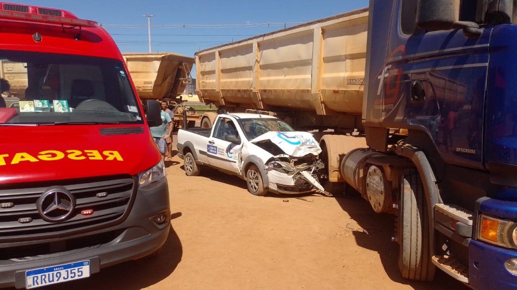 Um caminhão bitrem passou por cima de uma das rodas de uma Fiat Strada. De acordo com a equipe do Corpo de Bombeiros, o caminhão abriu espaço para entrar em um pátio de mecânica, e o veículo de passeio vinha logo atrás e não percebeu os sinais luminosos do caminhão, colidindo com a carreta e quase entrando debaixo de um dos eixos.