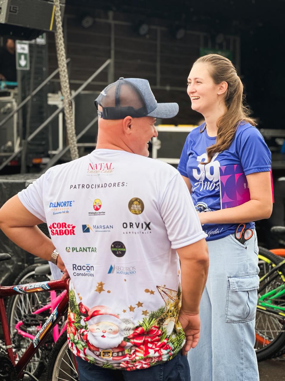 A tarde do último sábado (13) foi marcada por muita alegria e confraternização em Sorriso com a realização do Natal Encantado, evento que reuniu milhares de pessoas na Praça das Fontes, contou com a chegada do Papai Noel, sorteio de mais de 100 bicicletas, atrações musicais, personagens infantis e diversas atividades gratuitas voltadas para toda a família.