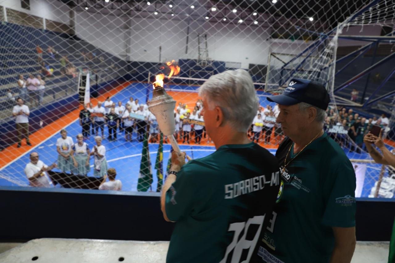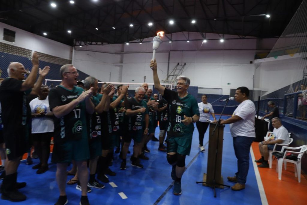 As competições da 18.ª edição das Olimpíadas da Pessoa Idosa começaram oficialmente na noite desta segunda-feira (17), com as primeiras partidas de vôlei adaptado logo após a cerimônia de abertura no Ginásio Domingão. O evento reuniu autoridades e atletas e trouxe, neste ano, uma novidade: a Caminhada da Alegria, que abriu a programação esportiva.