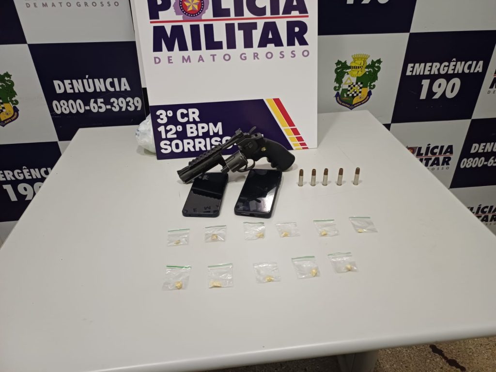 Durante a abordagem e as buscas pessoais, os militares localizaram material entorpecente. Conforme informou o comandante da Polícia Militar, tenente-coronel Inácio, os detidos são apontados como integrantes de facção criminosa. A partir de informações repassadas por um dos suspeitos, a equipe se deslocou até um local indicado, onde foi encontrado um simulacro de arma de fogo.