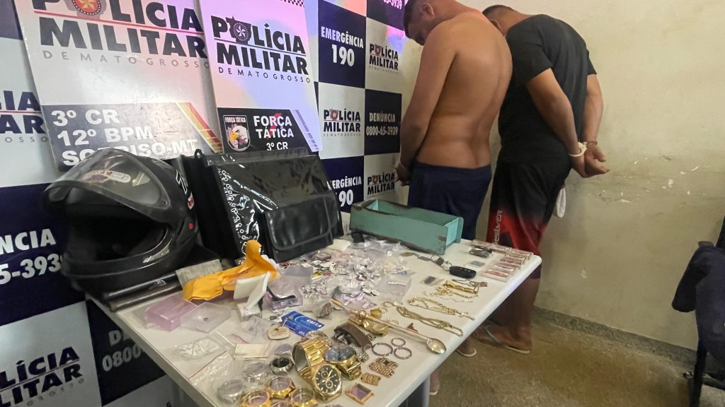 A Polícia Militar de Sorriso prendeu nesta segunda-feira(27), dois suspeitos envolvidos em um roubo a uma relojoaria da cidade, crime que teria causado um prejuízo de cerca de R$ 1 milhão ao estabelecimento. A ação criminosa ocorreu no bairro Village e contou com apoio de um veículo Corolla, utilizado para fuga.