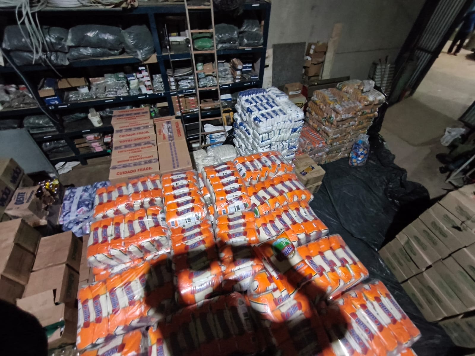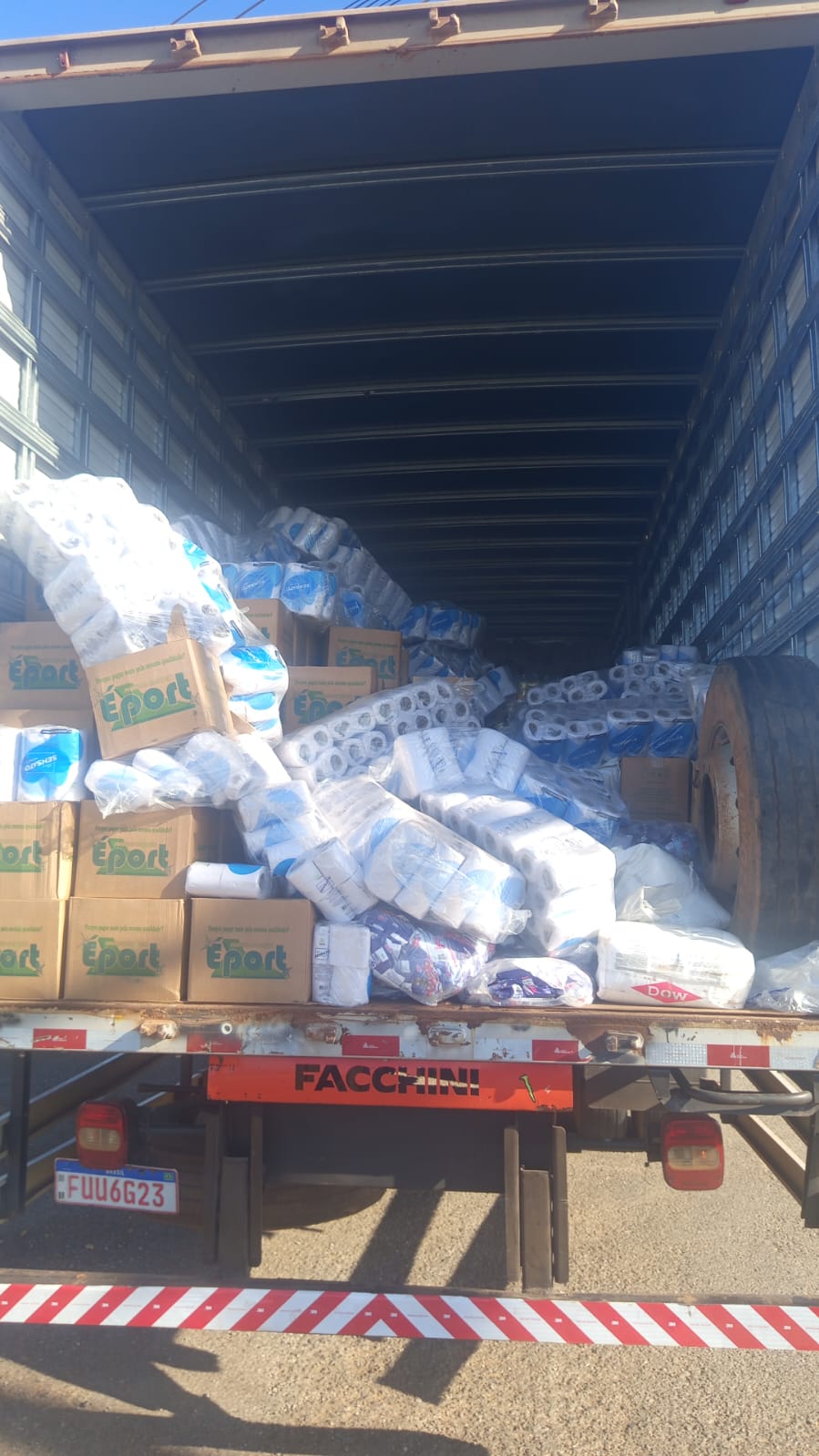 Durante a revista pessoal, nada de ilícito foi encontrado com os ocupantes. No entanto, no interior do caminhão havia grande quantidade de mercadorias dos setores alimentício e de limpeza.