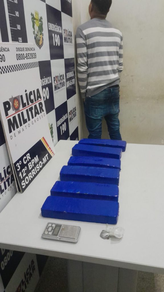 A guarnição deslocou-se até o endereço informado, onde localizou seis tabletes de maconha, totalizando aproximadamente 4,346 kg, além de uma balança de precisão, todos dentro de uma mochila sobre o guarda-roupa.
