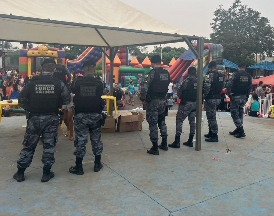 Após a prisão dos suspeitos e da apreensão das drogas, a Polícia Militar continuou a garantir a diversão das crianças, promovendo a segurança do evento.
