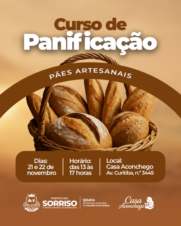 Estão abertas as inscrições para o curso profissionalizante de fabricação de pães artesanais, voltado especialmente para mulheres interessadas em aprender uma nova habilidade ou ampliar suas fontes de renda. As inscrições podem ser realizadas pelo link: AQUI