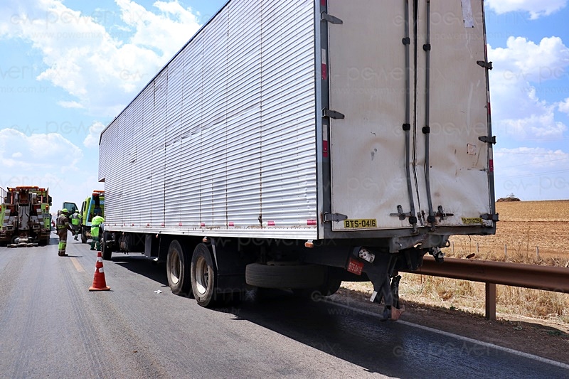 As informações preliminares apontam uma colisão lateral, com derramamento de carga de milho. A informação será confirmada pela análise da equipe da PRF