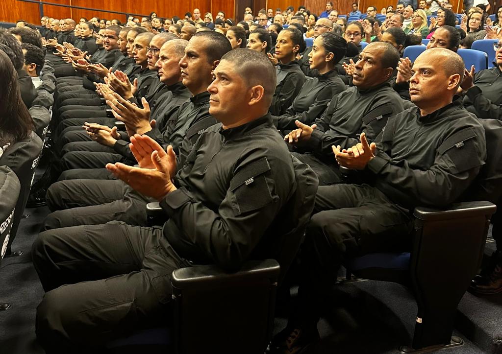 “Esse termo de posse é a assinatura de um compromisso que os senhores e as senhoras estão fazendo com o Estado de Mato Grosso e com a sociedade mato-grossense de buscar a segurança pública sempre pautada pela justiça. Quando a gente fala de enfrentamento às facções criminosas, não há espaço para amadorismo. Nós temos que ser profissionais da segurança pública. E o profissionalismo vem agora, no curso de formação, e depois, na capacitação continuada. Nós temos que agir de acordo com a lei e de forma profissional, porque assim vamos alcançar os resultados com eficiência e eficácia e entregar o que a sociedade e o Estado esperam da gente, que são a segurança pública e o resgate da paz social e da tranquilidade”, discursou, direcionado aos alunos.