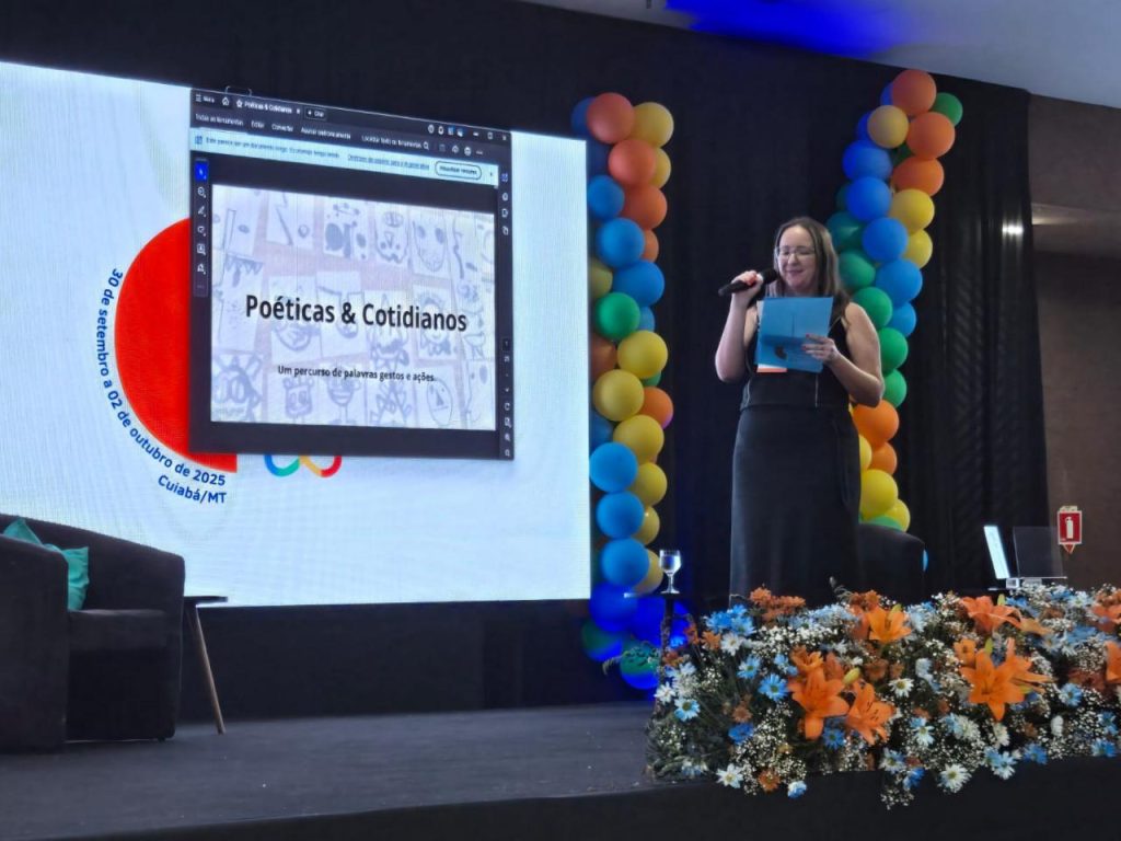 Representando Sorriso, a secretária municipal de Educação, Adriana Reichert Palú, acompanhada das coordenadoras pedagógicas Rosemary Taffarel e Elaine Brescansin, participou ativamente das atividades. Nesta quinta-feira, Adriana foi mediadora da palestra Poéticas visuais / A Poesia dos Dias, ministrada por Guga Cidral, poeta, músico, palhaço e artista dedicado à infância.
