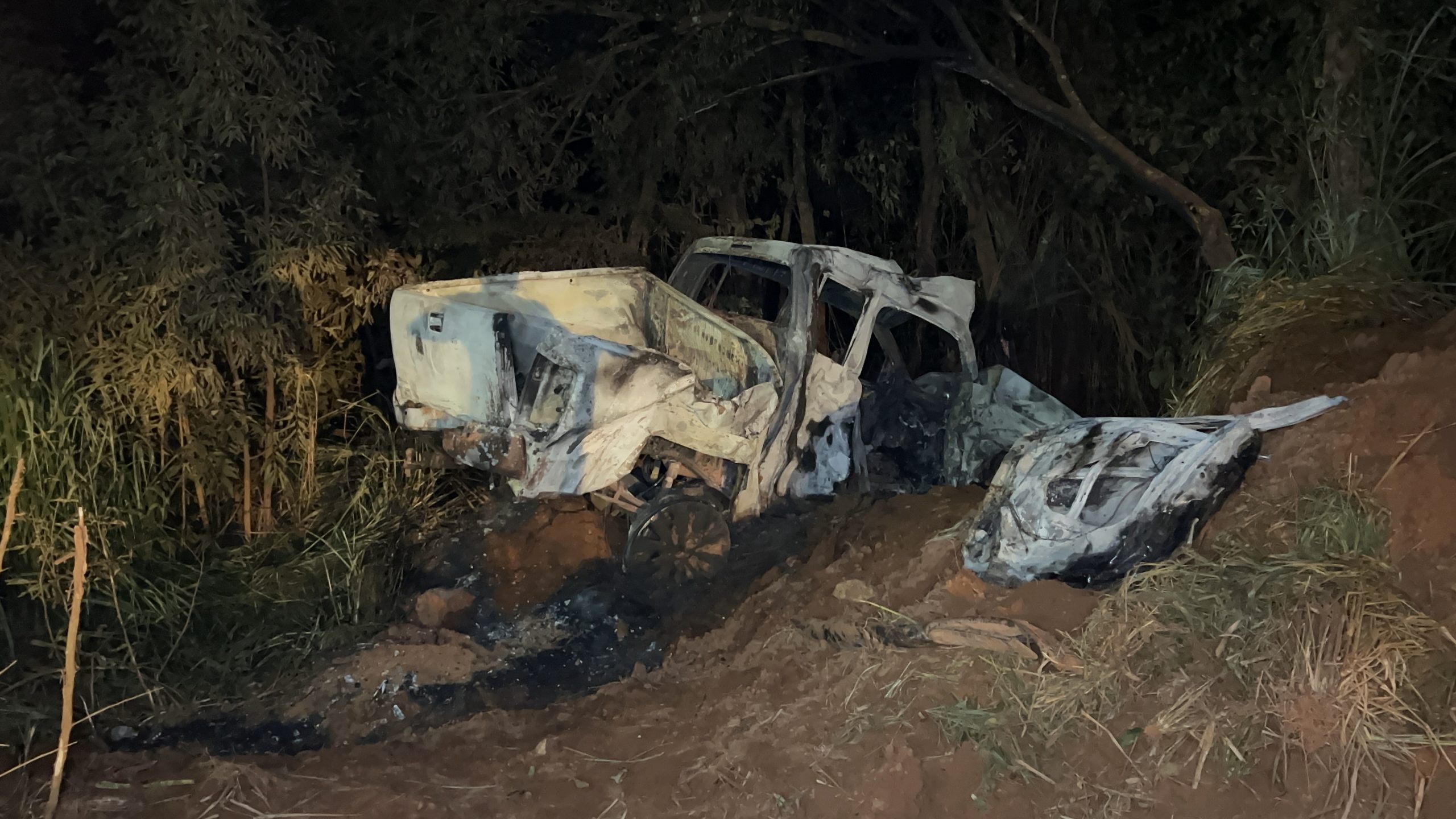 O Corpo de Bombeiros Militar de Mato Grosso realizou o combate às chamas e a retirada de duas vítimas já carbonizadas do interior do veículo.