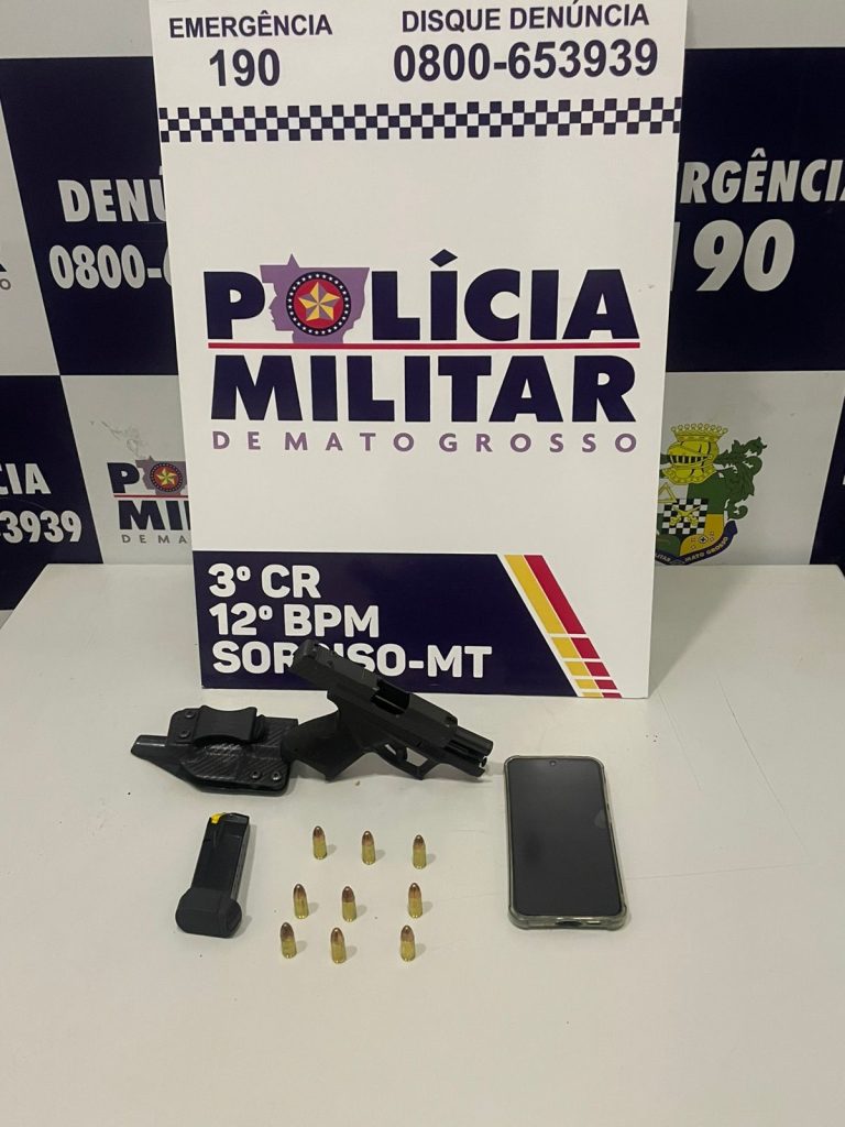 Na noite deste sábado (21), por volta das 21h55, um homem de 51 anos foi detido por porte ilegal de arma de fogo de uso restrito em Sorriso.