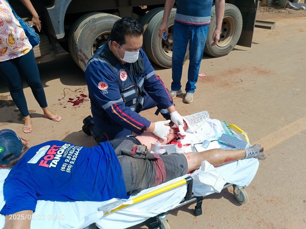 Sorriso: homem sofre corte profundo na perna e recebe atendimento de urgência do SAMU