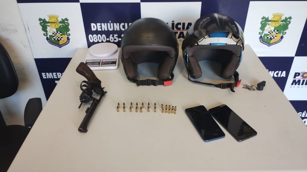 A equipe policial se deslocou imediatamente para o local e, ao chegar, avistou os suspeitos em uma motocicleta realizando disparos. Ao perceberem a presença da viatura, os indivíduos fugiram, iniciando-se, assim, o acompanhamento policial. Durante a perseguição, foi possível observar um dos suspeitos dispensando uma arma de fogo, o que levou a equipe a continuar o acompanhamento até o momento em que, no bairro Parque dos Poderes, os suspeitos perderam o controle da motocicleta e caíram ao chão.