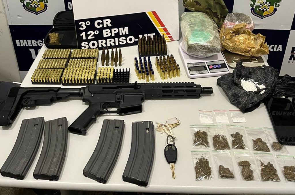 As investigações indicaram que “Melancia”, integrante de facção criminoas estava transportando armamentos e entorpecentes de Sinop para a região. Rayan, cúmplice de “Melancia”, foi abordado pela polícia ao sair de um veículo Palio. Após a detenção, os agentes encontraram drogas na residência de Rayan, que revelou a localização de mais armas e substâncias ilícitas em outra casa. No local, a polícia apreendeu um fuzil calibre 556, munições e uma quantidade significativa de drogas. Durante a operação, o suspeito resistiu à prisão, resultando em ferimentos leves.