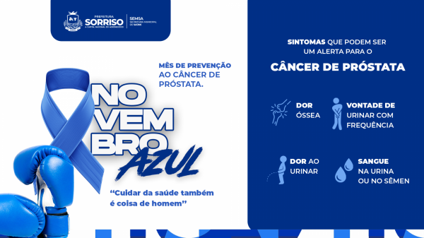 Com o tema “Cuidar da saúde também é coisa de homem”, a Secretaria Municipal de Saúde (Semsa) de Sorriso deu início às ações do Novembro Azul, movimento nacional que busca conscientizar sobre a prevenção e o diagnóstico precoce do câncer de próstata, além de incentivar hábitos saudáveis e o cuidado integral com a saúde masculina.