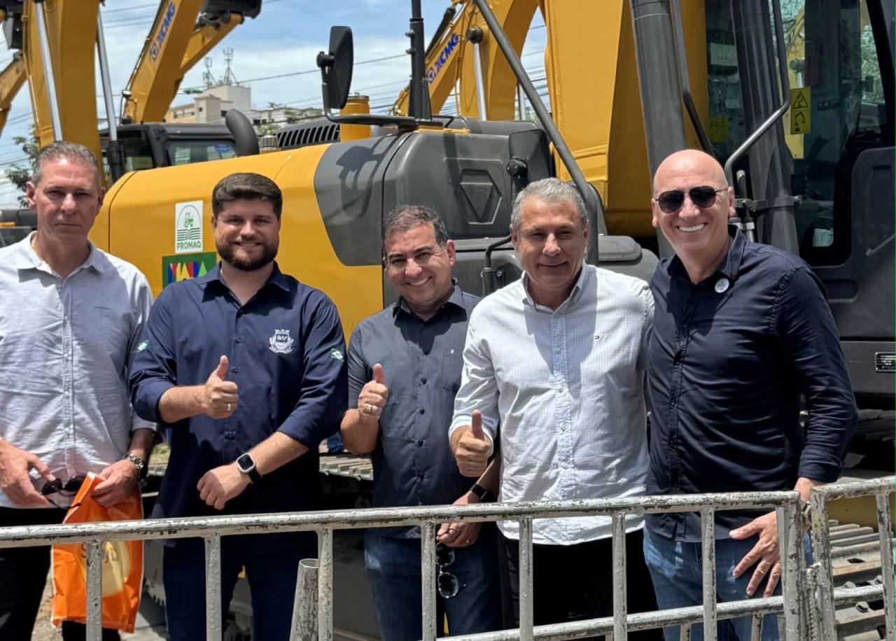 Em cerimônia realizada em Cuiabá, Sorriso recebeu nesta semana dois tratores e uma retroescavadeira pelo Programa Nacional de Modernização e Apoio à Produção Agrícola (Promaq), iniciativa do Ministério da Agricultura e Pecuária (Mapa) que contempla os 142 municípios de Mato Grosso. Os maquinários foram entregues aos municípios mato-grossenses pelo ministro da Agricultura e Pecuária, Carlos Fávaro. No caso de Sorriso os investimentos somam R$ 671 mil em máquinas agrícolas.