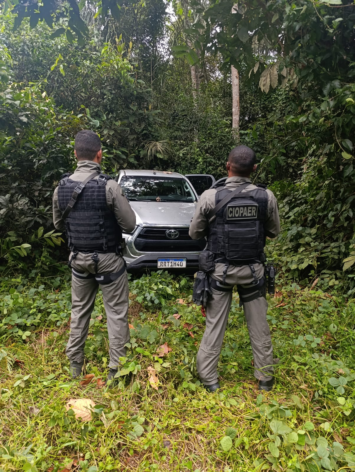 Durante a abordagem, o suspeito indicou o local onde estavam notebooks levados da vítima, escondidos em uma área de mata no município. Já a caminhonete foi localizada com auxílio do Ciopaer, também em uma região de mata, com apoio da Polícia Militar de Ipiranga do Norte.