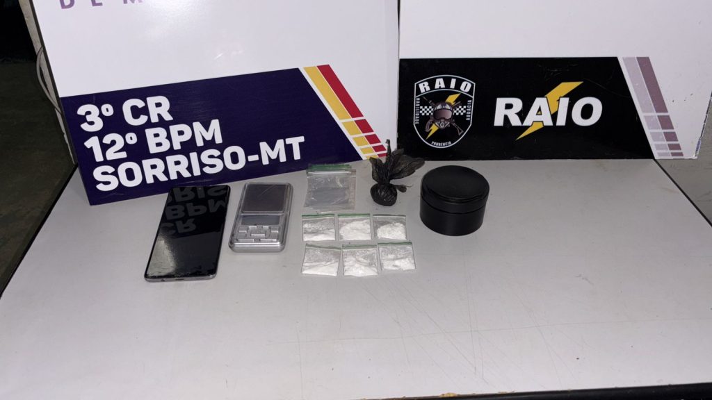 Em entrevista aos policiais, o homem informou que possuía mais entorpecentes em sua residência. Com apoio da equipe Raio e mediante autorização da responsável pelo imóvel, os militares realizaram buscas no quarto do suspeito, onde foram encontradas outras porções de substância análoga à cocaína, maconha, além de uma balança de precisão e embalagens do tipo zip, comumente utilizadas para o fracionamento e comercialização de drogas.