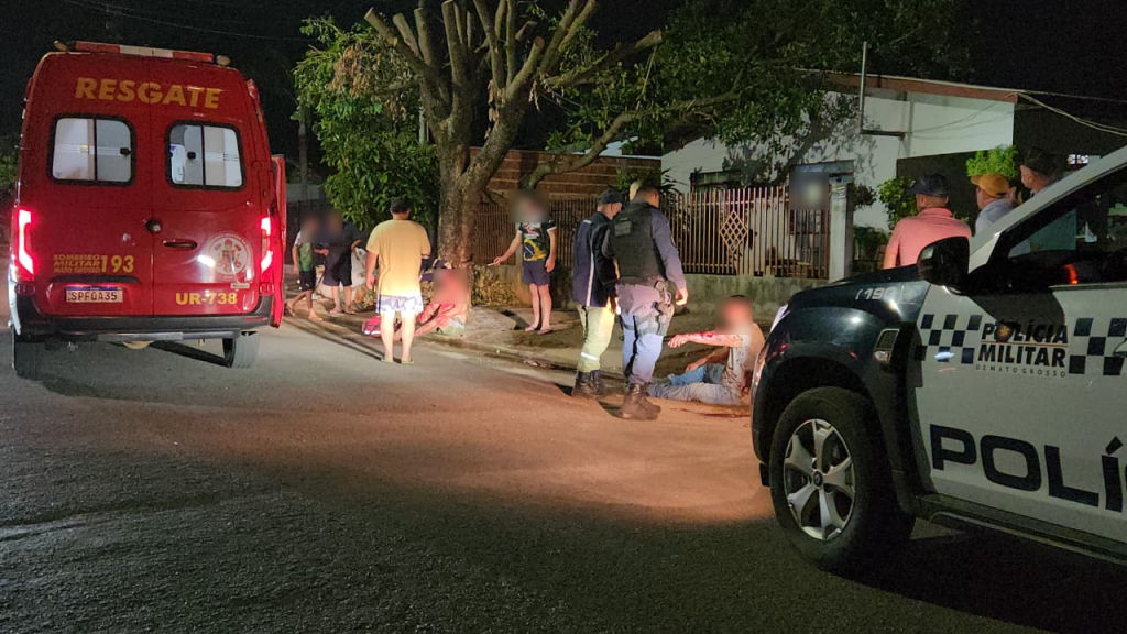 Ao chegarem no endereço, o Corpo de Bombeiros encontrou dois homens ensanguentados, mas apenas um deles estaria com ferimentos profundos na região no tórax, escápula, crânio, antebraço e braço, de acordo com a equipe de enfermagem. A vítima foi encaminhada ao Hospital Regional.