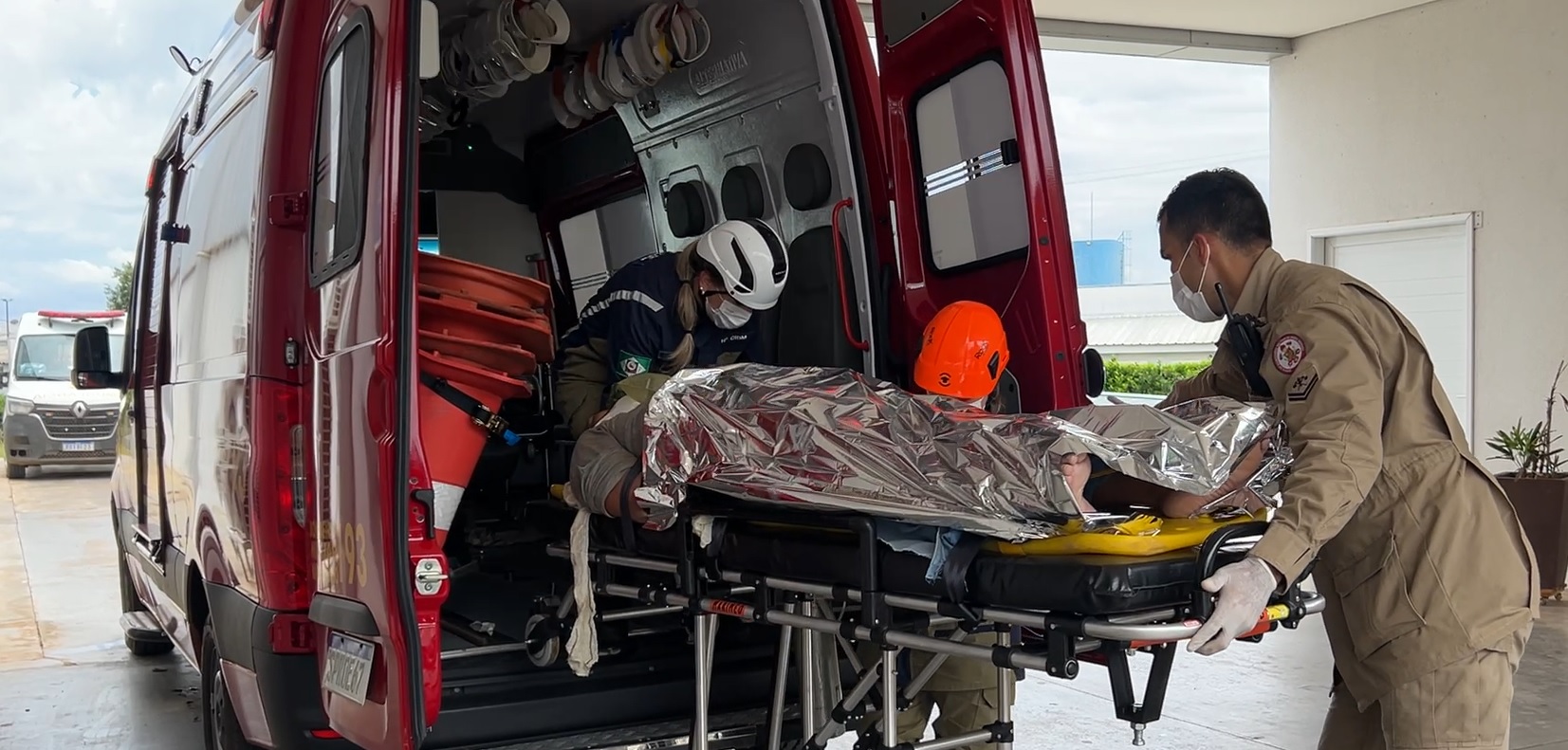 O trabalhador estava inconsciente e permaneceu nessa condição durante todo o trajeto até o hospital. A princípio, não foram identificadas fraturas, mas ele apresentava sinais de baixa oxigenação. No local, recebeu os primeiros atendimentos antes de ser transportado.