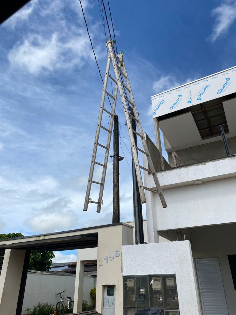 Segundo o sargento Thalmir, do Corpo de Bombeiros, o homem não utilizava equipamentos de proteção individual no momento do acidente. “Ele não seguia as normas da NR-35, que determina que todo trabalho acima de dois metros deve ser realizado com ancoragem. A escada também não estava devidamente fixada, além da ausência de cinto paraquedista e capacete”, explicou.