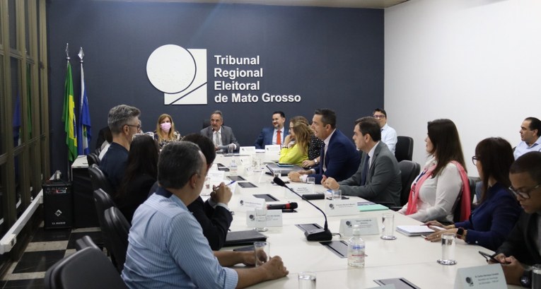 Os detalhes com relação à organização das Eleições 2022 foram revisados na 8ª reunião de acompanhamento, realizada nesta quarta-feira (28.09), no Tribunal Regional Eleitoral de Mato Grosso (TRE-MT). O encontro com a participação da presidência, vice-presidência e Corregedoria Regional Eleitoral, juízes auxiliares e eleitorais e equipe técnica.