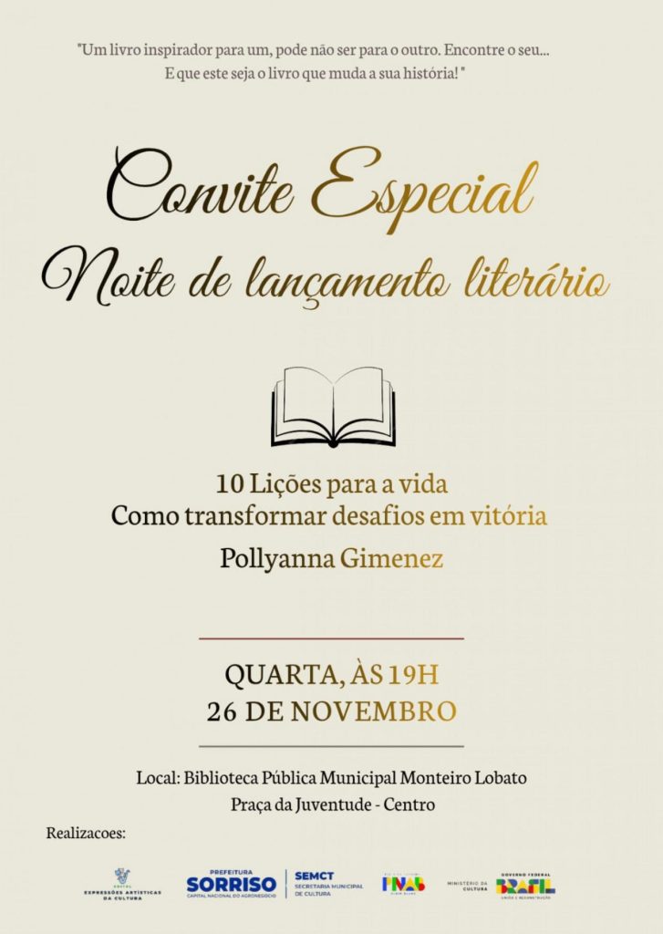 A literatura de Sorriso ganhará novos capítulos nesta quarta-feira (26), quando três escritores do município lançam quatro obras na Biblioteca Municipal Monteiro Lobato, na Praça da Juventude. Os títulos abrangem desde histórias infantis cheias de fantasia e aventura até reflexões sobre superação e crescimento pessoal.