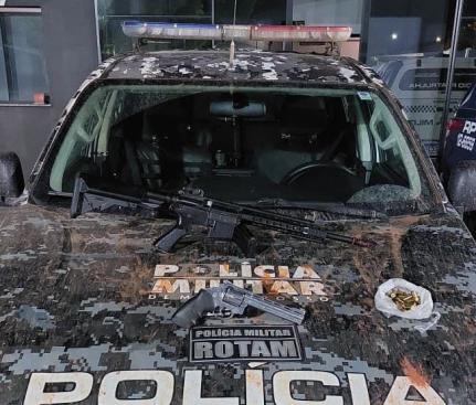A equipe da Rotam prendeu 3 jovens e apreendeu um revólver calibre 38, munições e um simulacro de fuzil durante uma abordagem na noite de terça-feira (10), na praça municipal Miguel Gajardoni, em Pontes e Lacerda (448 km ao oeste de Cuiabá).