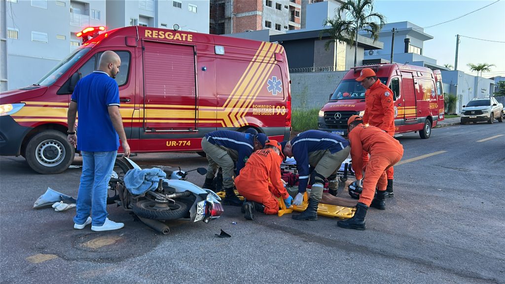 Com o impacto, a motociclista sofreu escoriações e uma fratura no braço. O passageiro teve uma luxação no ombro. Ambos receberam atendimento das equipes de resgate e foram encaminhados ao Hospital Regional para avaliação e cuidados médicos.